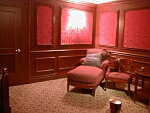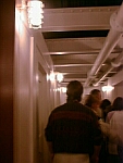 The next hallway was blackened with the ceiling distant and ominous again, noises of machinery, shoveling coal, and gears playing from above our heads. Over the doorway at the end of the hallway was a watertight door, so it was as if we were walking through the boiler room and out through one of the watertight doors. Dappled red light shone across it and there was a sense of urgency to get out of this place. Who could forget the vivid picture created by the movie when a boiler room worker barely made it under one of those doors as it closed?