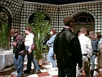 In turning a corner, a first class stateroom appeared. It was unexpected and exciting, prompting me to get the camera out. There had been a sign saying we couldn't take any pictures, but with my trusty digital camera, I was able to turn off the flash. Light damages artifacts, antiques, and the like so without a flash there would be no more damage than simply looking at it. The stateroom was little more than a bed and a lounge chair, though the wallpaper, the rich color, and the proximity to me made me forget that for the moment. Really, the furniture was sub par and the room was sparse, but I shudder to imagine how much the exhibit would have cost me if they'd recreated an entire first class suite. This gave the general idea and was fancier than the houses most of us live in. Down the hall a bit was another Plexiglas case with a safe that had been "salvaged" from the wreck. The line was slowing down as people were gawking at the next room. Through a doorway and we were in the Palm Court Café.