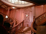 The crowd was thick by the base of the stairs and there was a young woman there taking questions about the staircase. Her real purpose was to make sure no one jumped the rope to walk on it. She was dressed in a mock-Titanic dress and her hair was up. All the while I was snapping pictures, most of which were blocked by backs of heads or the body of much taller oblivious strangers. I was trying to get the statue the woman was standing beside but for the life of me I couldn't. She spotted me and told me not to take pictures. I told her I wasn't using a flash (having become a broken record).