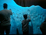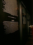 We stepped through the doors into a great gaping black room. We passed a quote on the wall and entered the first main room. This was dedicated to the construction and exterior amenities of the ship. Beneath our feet were shifting and creaking decking boards. The room was closed in on all sides with blown up historical images, a television, and more quotes on the walls. In the center of the room was a coffin-length Plexiglas case with a scale model of Titanic inside. The accuracy was phenomenal; every tiny detail, every little window was in place. My minimal knowledge of the ship became all the more dwarfed when my friend asked about something on the model and I didn't know what it was.