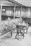 The Dining Saloon was actually 2 rooms that were divided by a watertight bulkhead. The walls were white and decorated with posters of the International Mercantile Marine.