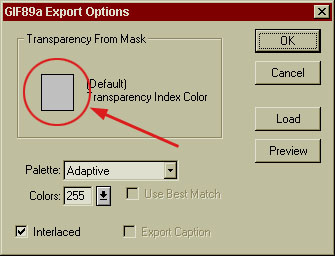 Notice that I didn't use feathering on the oval selection. Using feathering with transparent GIFs can make the edge around your image look strange. There is no partial transparency. It's either transparent or it's solid. So if you have an image with a lot of feathering it will just make the partial pixels solid. Sometimes it can still be hidden, and Photoshop 5.5 deals with this slightly better, but this is the limit of transparent GIFs.